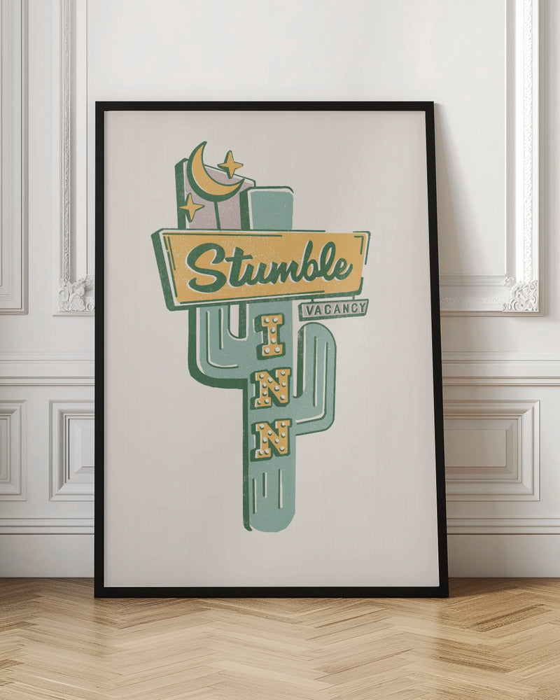 Dyk ner i den charmiga världen av The Whiskey Ginger med denna unika poster, "Stumble Inn Southwestern Roadside Motel Art". Denna affisch fångar essensen av en klassisk amerikansk roadtrip, med sin retroinspirerade illustration av ett ökenmotell. Med livfulla färger som grönt och gult, och en ikonisk neonskylt med kaktusar, för den tankarna till soliga äventyr i sydvästra USA. En perfekt blandning av humor och nostalgi för varje hem.