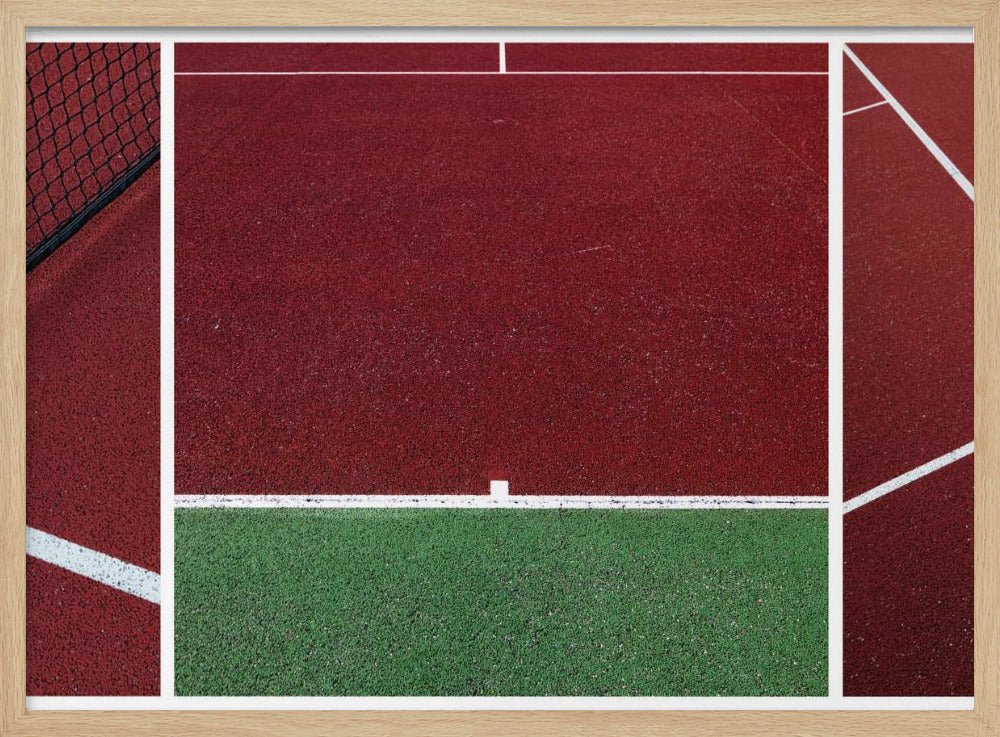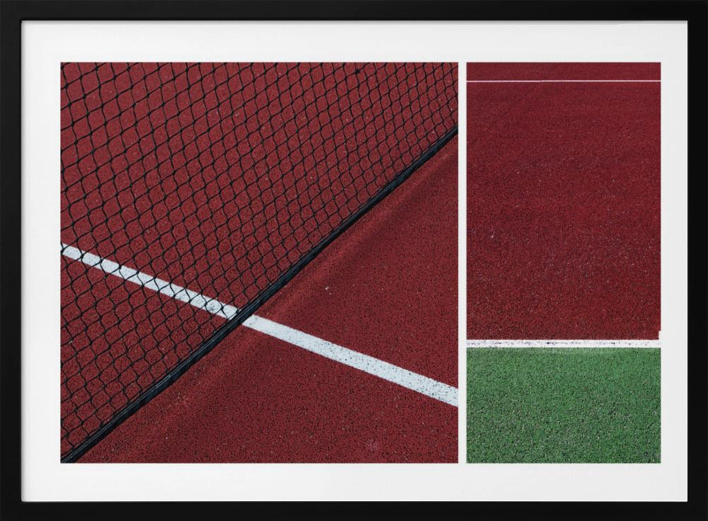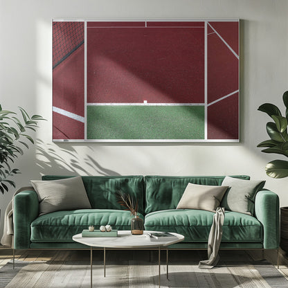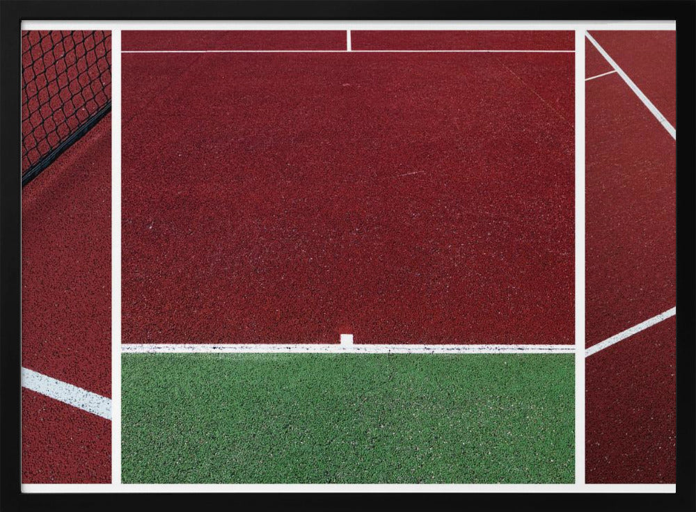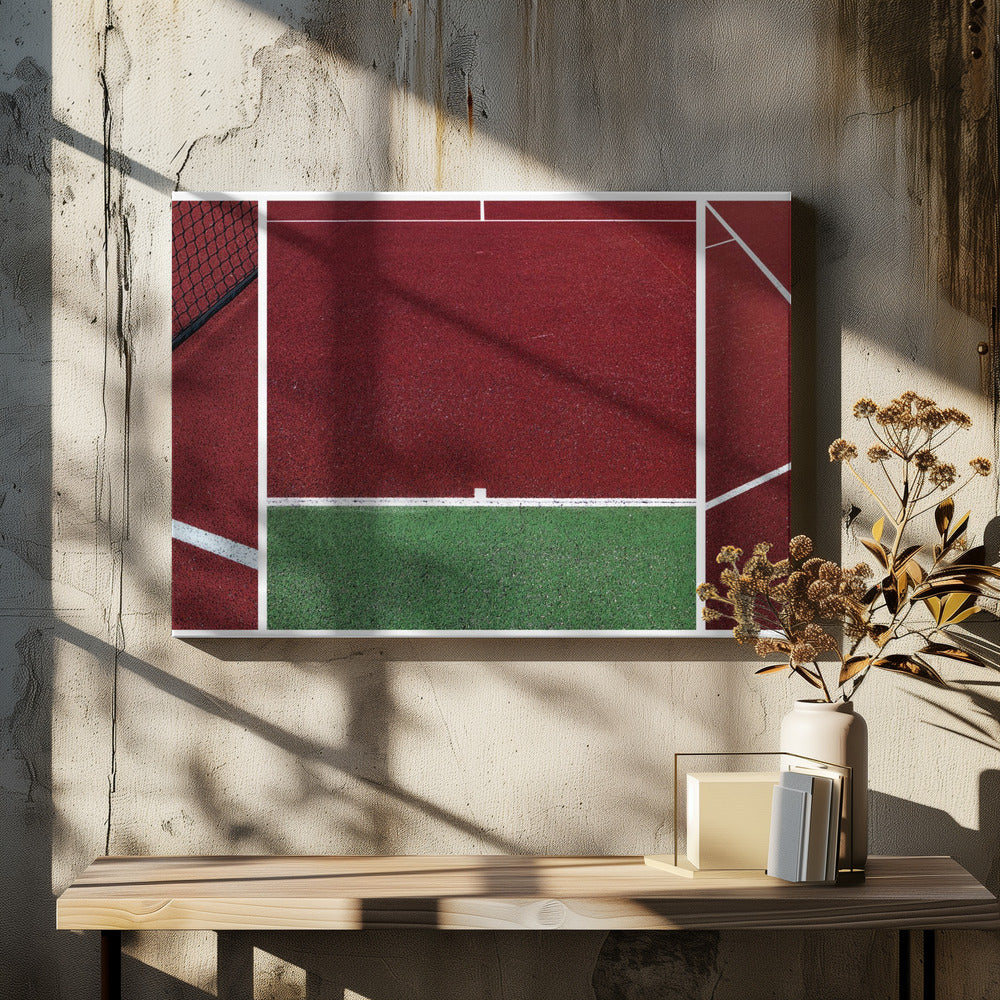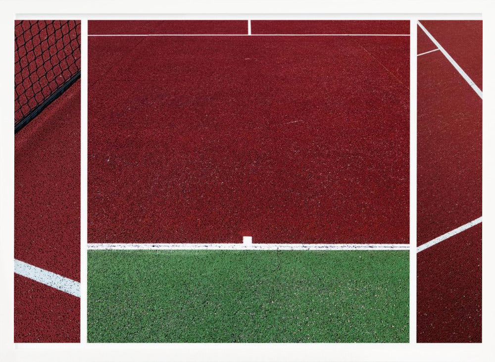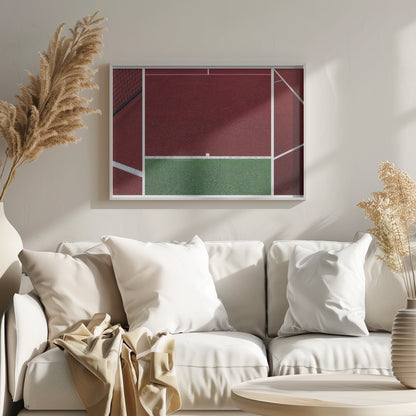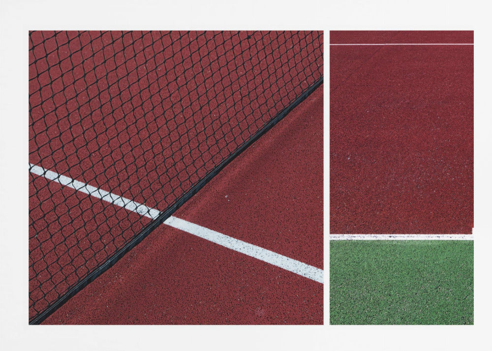 Upplev den dynamiska atmosfären av en tennismatch genom Jeroen van de Wiels konstverk "The Court". Denna poster och art print fångar essensen av sporten med djärva, abstrakta linjer och en fängslande röd färgpalett som dominerar bilden. Det är en modern tolkning av en tennisbana, där arkitektur och action möts i ett grafiskt panorama.