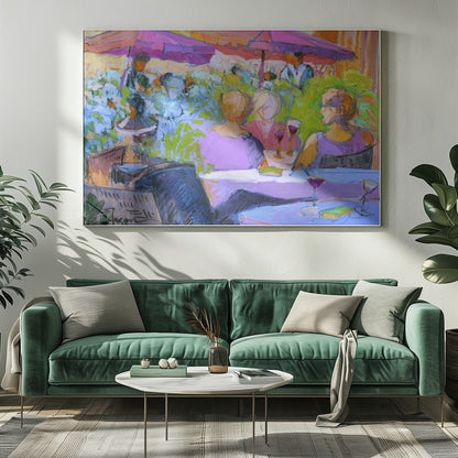 Denna fängslande poster av Dorothy Fagan, "Three Sisters", är en abstrakt akrylmålning som utstrålar en lugn och inbjudande atmosfär. Med sina varma, livfulla färger och dynamiska penseldrag skapar den en känsla av avkoppling och gemenskap, som hämtad från ett mysigt café. Fånga essensen av ett stillsamt ögonblick med denna konstfulla textur.
