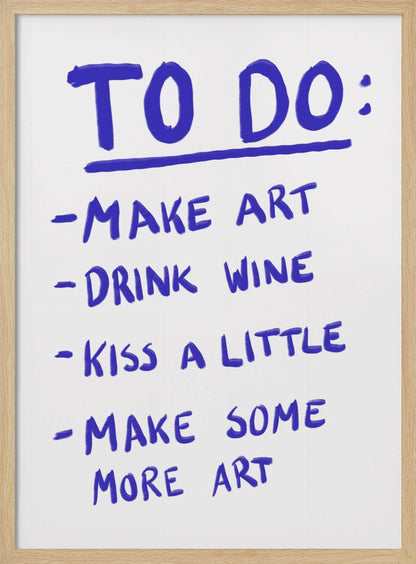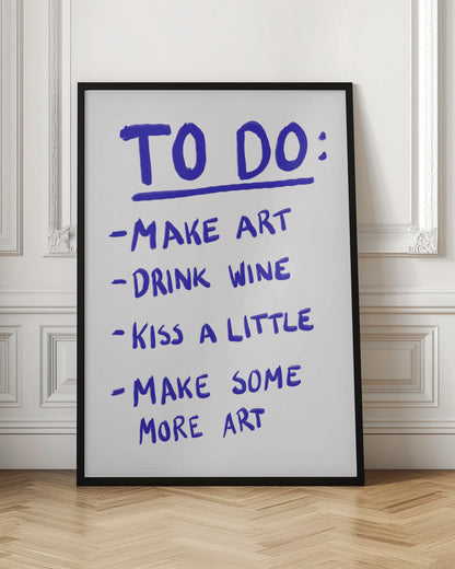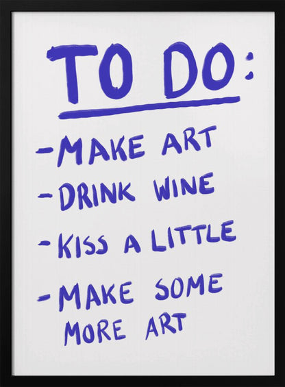 Den charmiga "To Do - Poster / Art Print" av Athene Fritsch fångar ögonblicket av kärlek och lekfullhet. Med en ljus och ren bakgrund lyfts ett älskande par fram, ackompanjerade av en inspirerande "att göra-lista" som hyllar gemenskap och passion. Den grafiska stilen och den ljusa färgpaletten skapar ett motiv som är både romantiskt och motiverande.