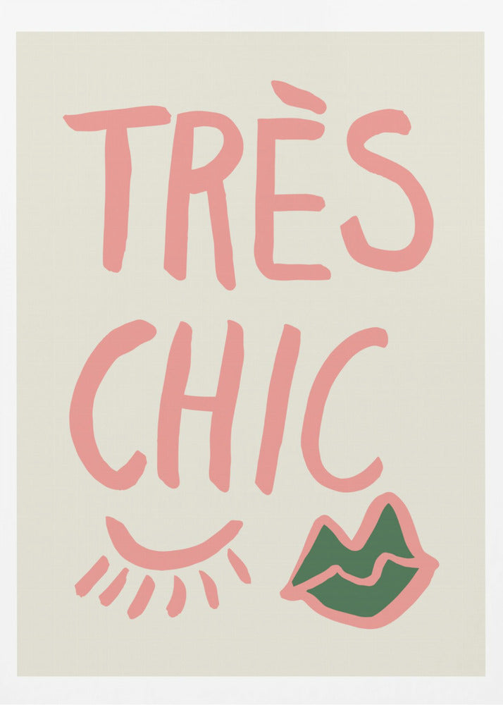 Denna iögonfallande poster från Pictufy Studio, med texten "Tres Chic" och en stiliserad mun i grönt och rosa, är ett perfekt uttryck för elegans och lekfullhet. Den grafiska designen kombinerar typografi med en modern illustration för att skapa ett unikt och inspirerande konstverk.