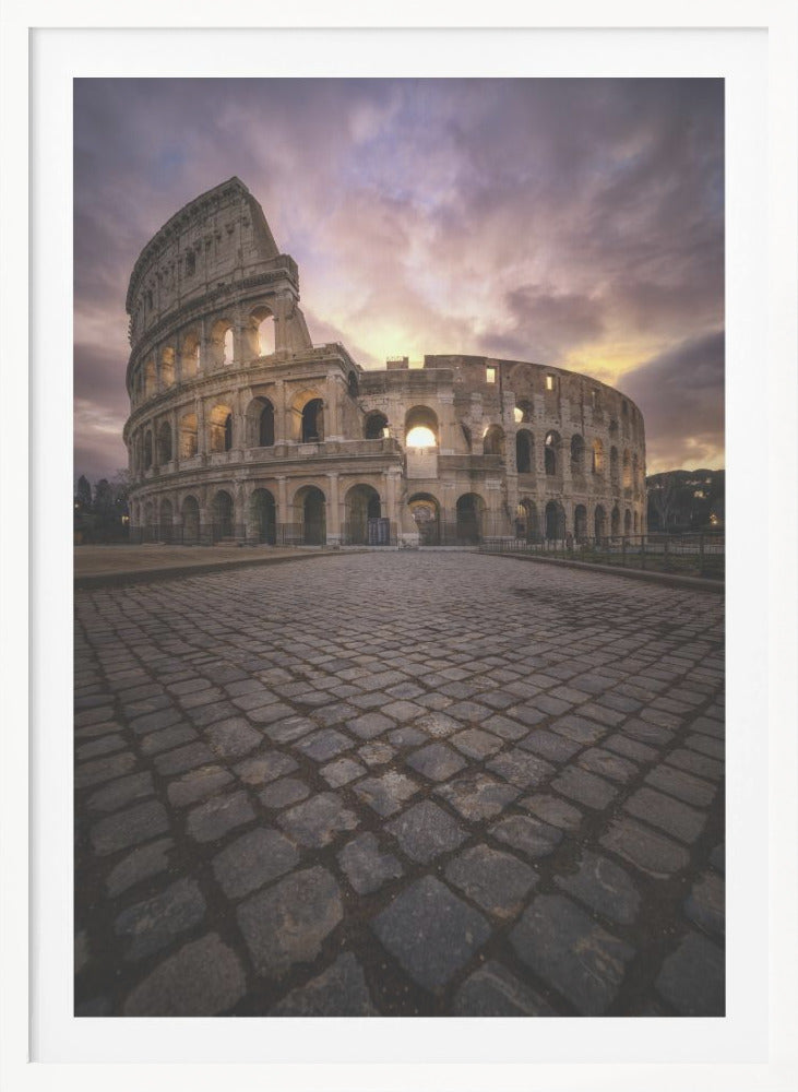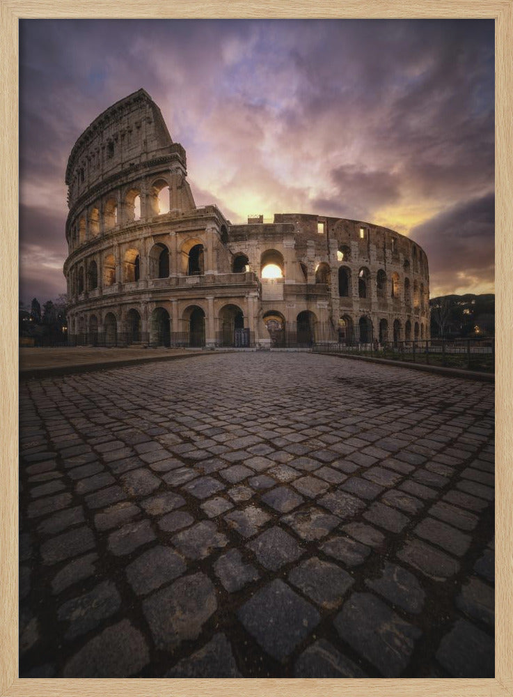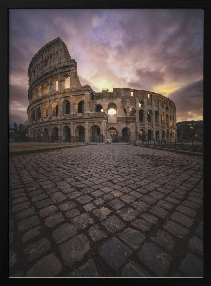 Juan Pablo de Miguels konstverk "Tres luces no tan perdidas" fångar den tidlösa skönheten i antik romersk arkitektur med en nästan eterisk känsla. Denna affisch skildrar ikoniska ruiner badade i ett mjukt, dramatiskt ljus som framhäver strukturens storslagenhet och dess rika historia. Ett mästerligt samspel mellan skugga och ljus skapar en fängslande atmosfär som förflyttar betraktaren till en svunnen tid.