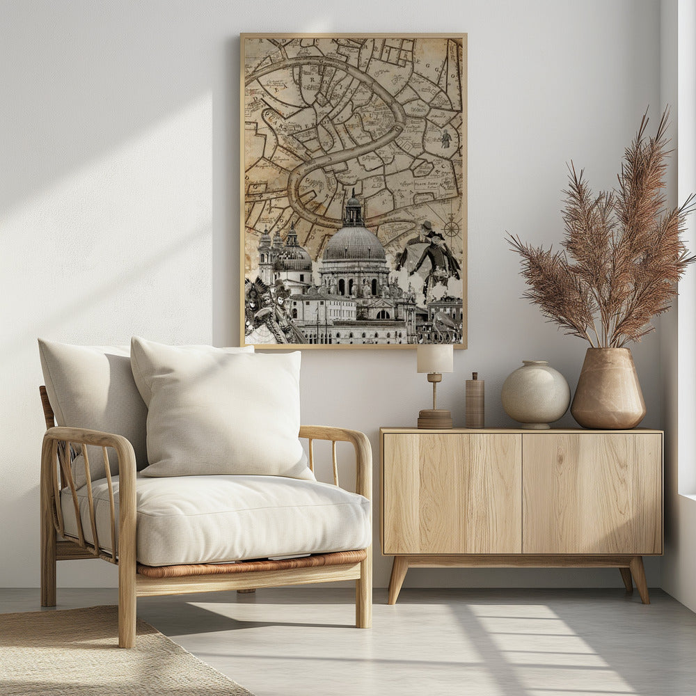 Denna fantastiska poster av konstnären Simon Goggin fångar Venedigs tidlösa skönhet med en levande och detaljerad illustration. Den grafiska stilen framhäver stadens ikoniska arkitektur, de slingrande kanalerna och gondolerna, vilket skapar en känsla av historisk charm och italiensk atmosfär. Ett perfekt konstverk för dig som älskar stadens unika karaktär.