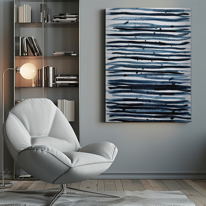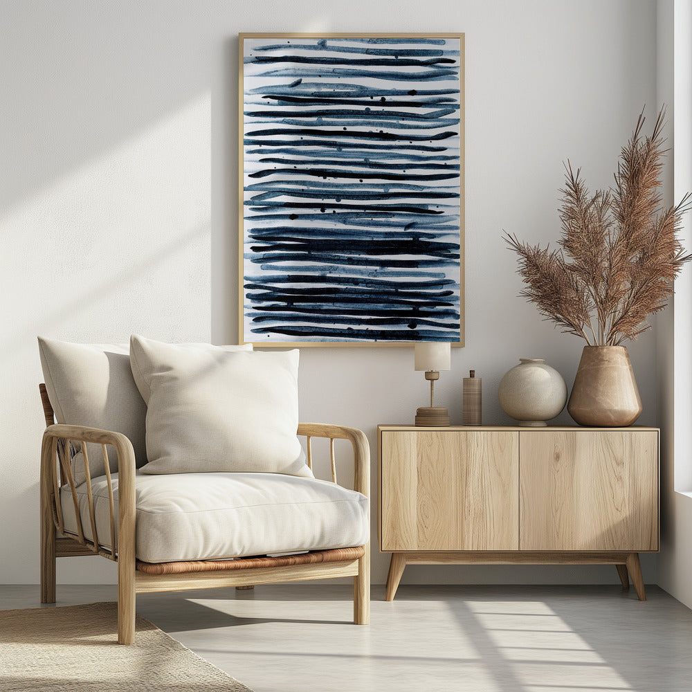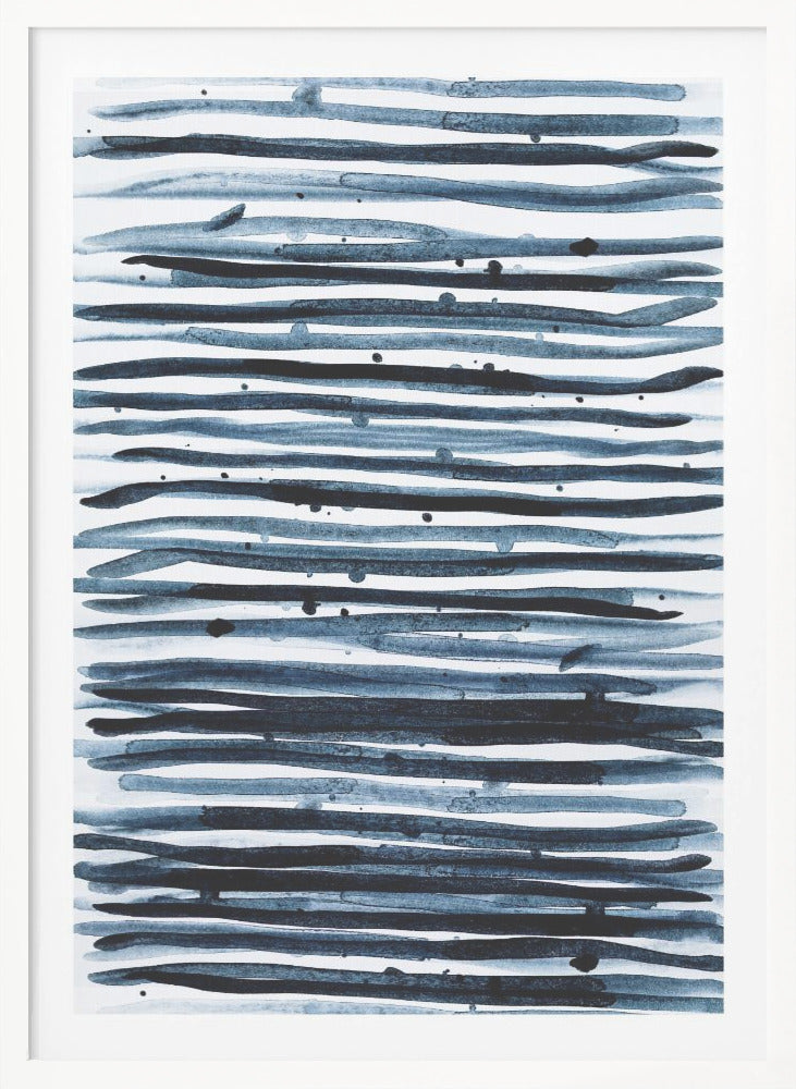 Upptäck "Watercolors 9" av Mareike Böhmer, ett fängslande konstverk som förvandlar akvarellens flödande natur till en dynamisk abstraktion. Med ljusa, nästan självlysande blå och vita toner skapar detta tryck en känsla av lugn och rörelse. Organiska former och linjer smälter samman i en harmonisk komposition, framhävd av en mjuk textur.