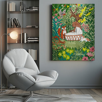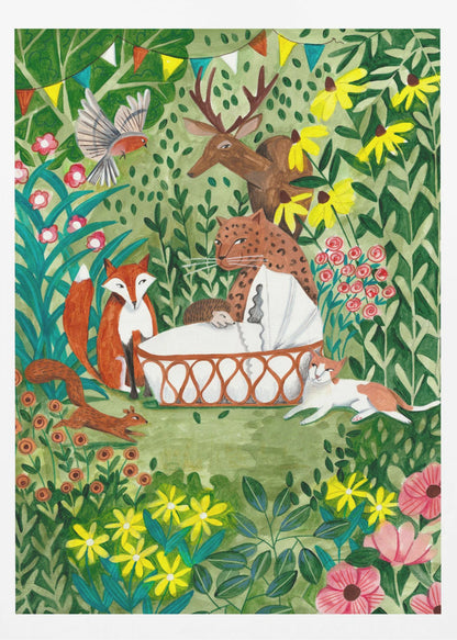 Följ med på ett äventyr bland söta djur som igelkottar, rävar, hjortar och fåglar, alla omgivna av frodiga blommor och växter. Varje detalj är illustrerad med en sagolik känsla som väcker fantasin till liv och skapar en lugn och inbjudande atmosfär.