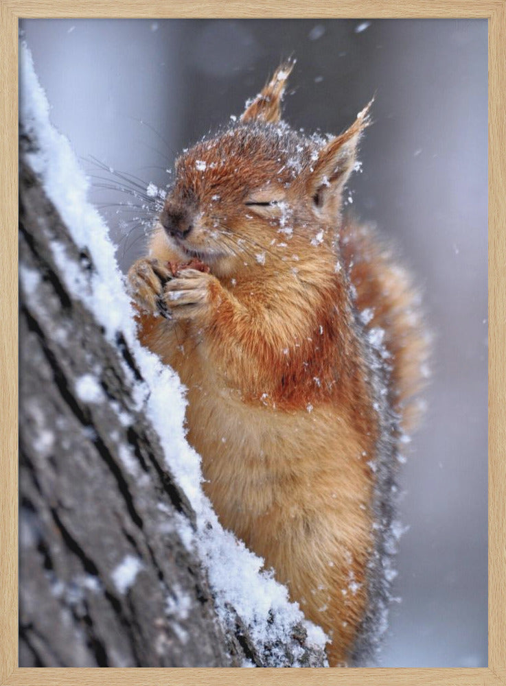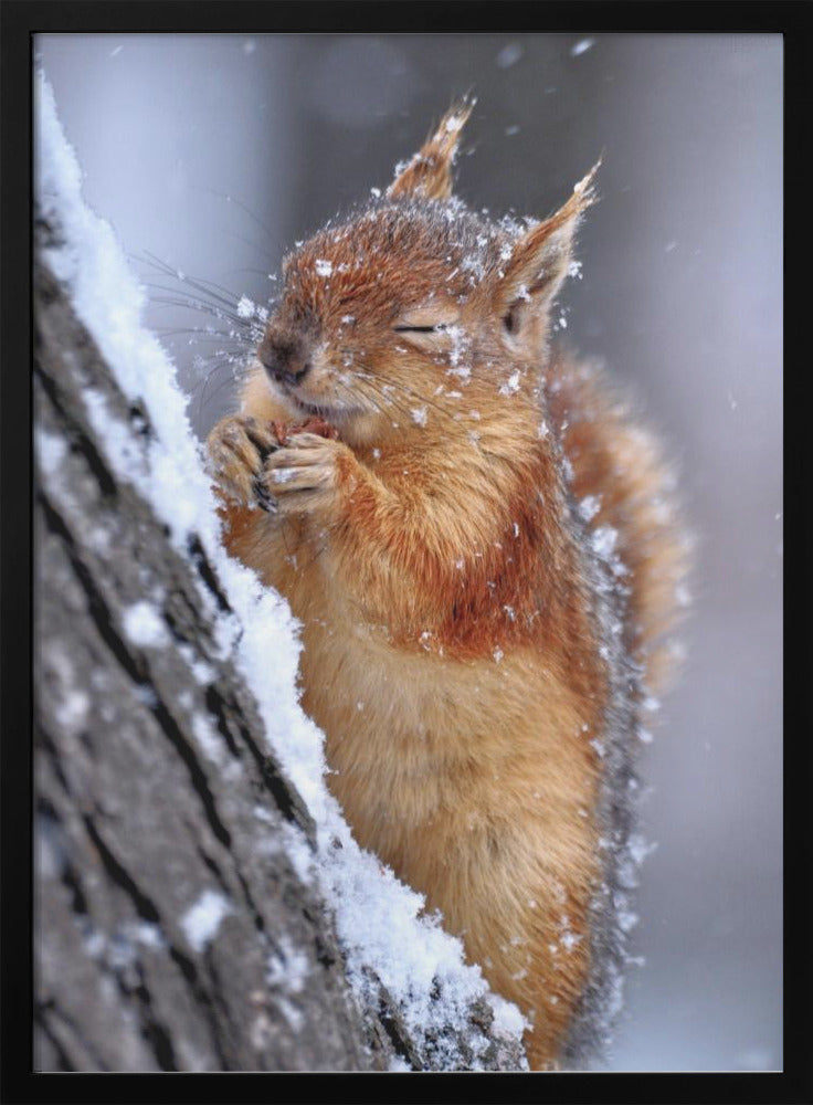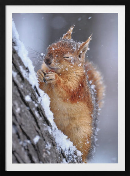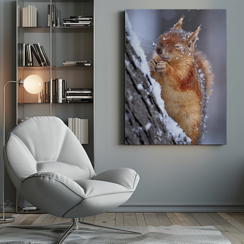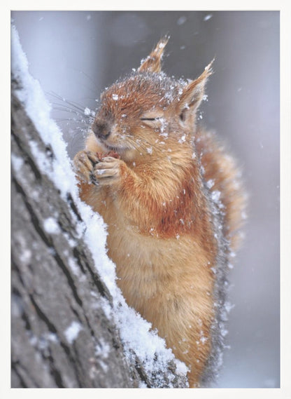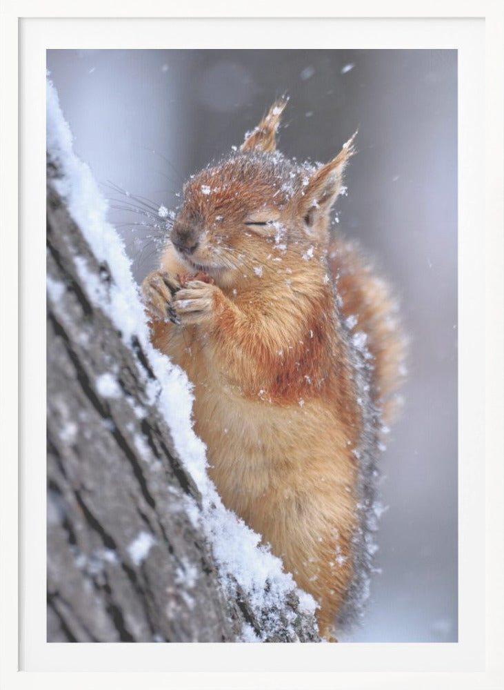 Låt dig förtrollas av Ervin Kobakçis charmiga poster "Winter", som fångar den kalla årstidens stillhet med en bedårande ekorre i centrum. Konstverket utstrålar en mjuk och inbjudande känsla, där djurets ludiga päls och de snöiga detaljerna skapar en varm kontrast mot vinterkylan. En perfekt tavla för att addera en touch av vild natur och sötma till ditt hem.