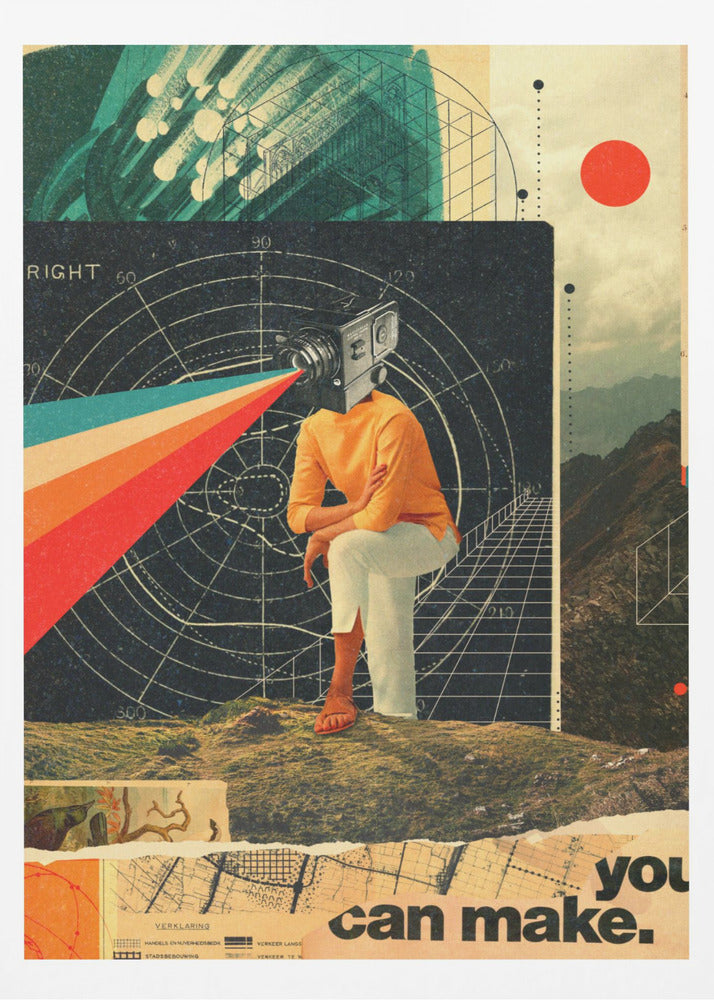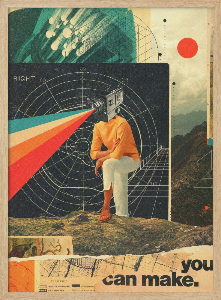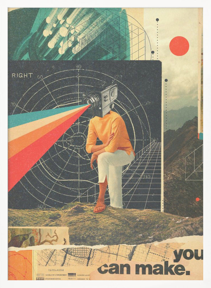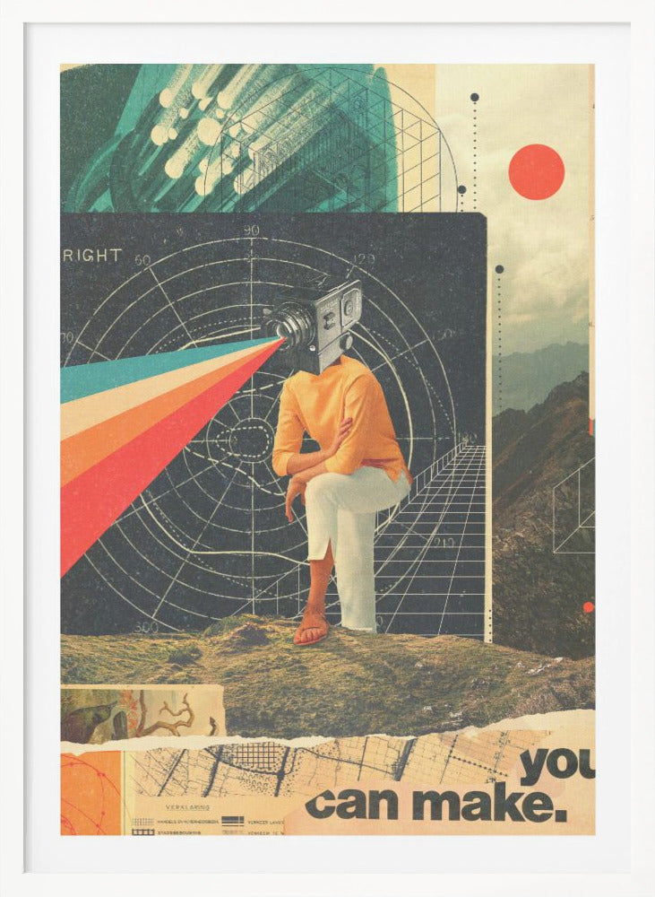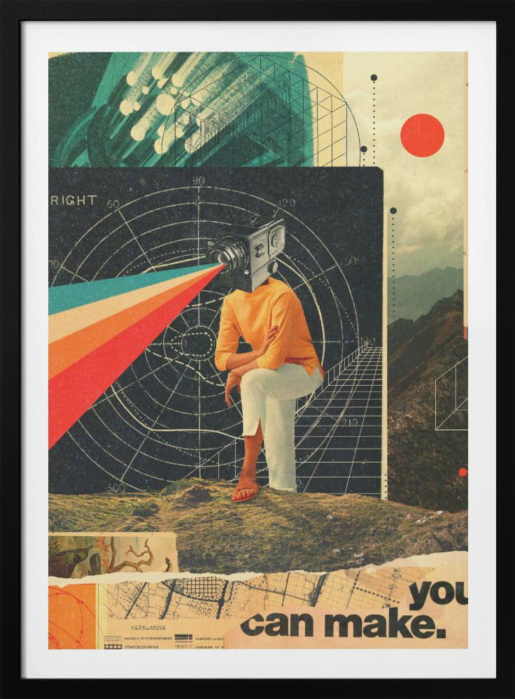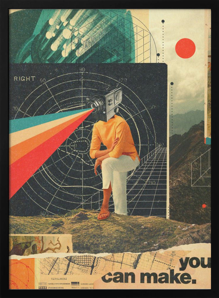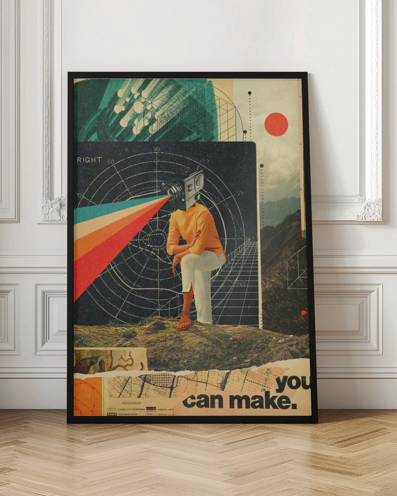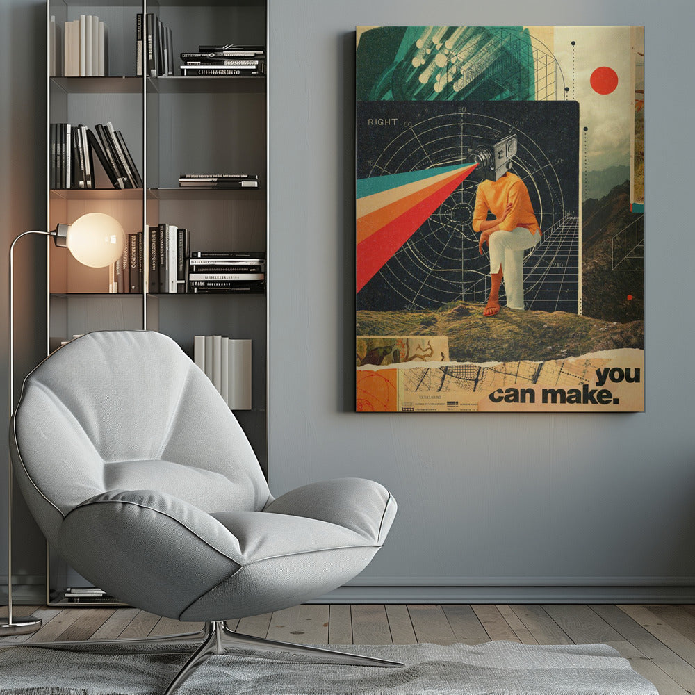 I 'You Can Make It Right' fångar konstnären Frank Moth en surrealistisk drömvärld med en färgstark kollage-estetik. Detta digitala konstverk blandar geometriska former, fåglar och människor i ett futuristiskt landskap. De livfulla färgerna och det grafiska montaget skapar en lekfull men tankeväckande känsla som för tankarna till popkonst och nostalgi, vilket gör den till en perfekt tavla för att väcka konversation.