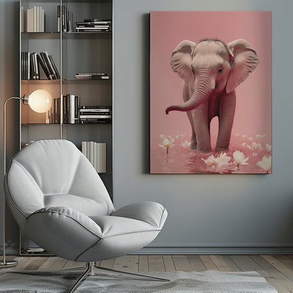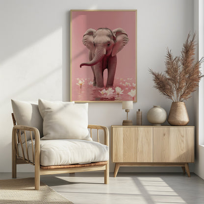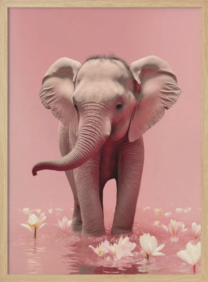 Från den omtyckta konstnären Treechild kommer denna bedårande poster med en ung elefant. Med sin mjuka pastellpalett och drömlika akvarellstil fångar den perfekt den oskyldiga charmen hos vilda djur. De fina blomdetaljerna bidrar till en lugn och inbjudande känsla, perfekt för barnrummet eller en lekfull inredningsdetalj.